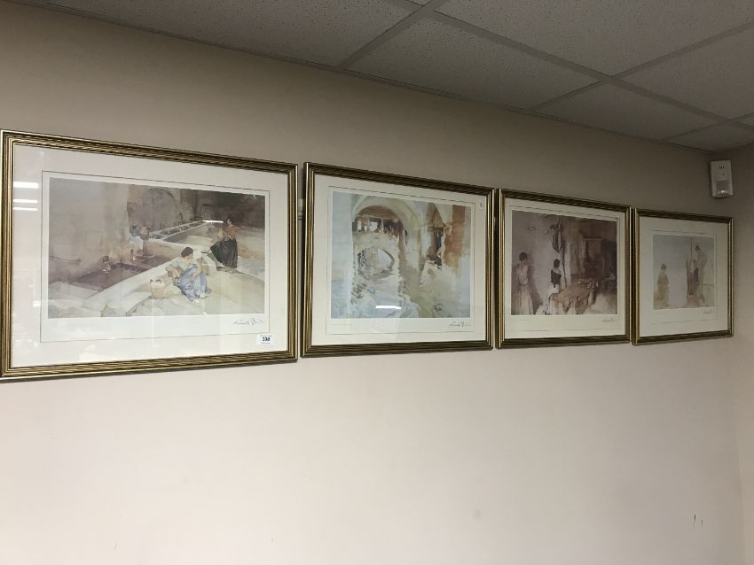 Four gilt framed Russell Flint prints - Water Arches, The Seven Springs of Vers, An August Morning and Provincial Sisters