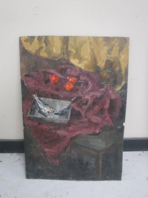 Donald James White : Still life with fish, oil on board, 50 cm x 71 cm.
