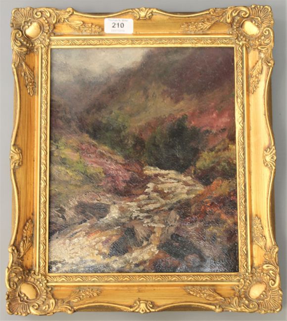 John Falconar Slater : Study of a river valley, oil on panel, signed, 29 cm x 24 cm, framed.