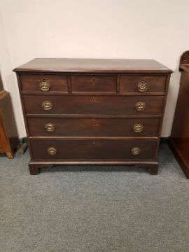 A George III mahogany chest of six drawers on bracket feet, width 118cm