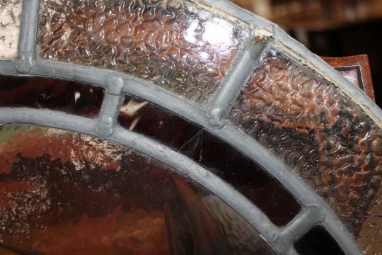 A circular leaded glass panel with hand painted "Kingfisher" decoration, diameter 52 cm.