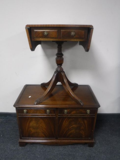 A Reprodux double door low cabinet and matching flap sided occasional table