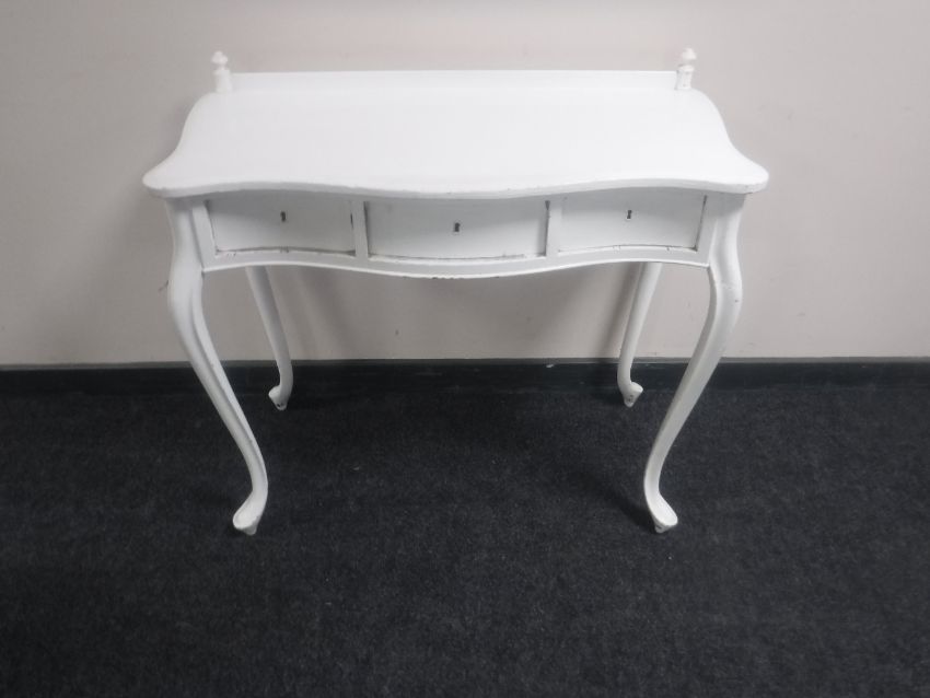 An oak serpentine fronted three drawer dressing table on cabriole legs