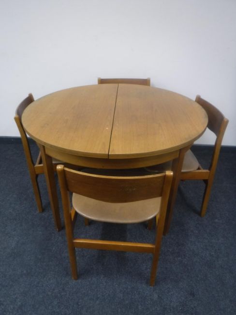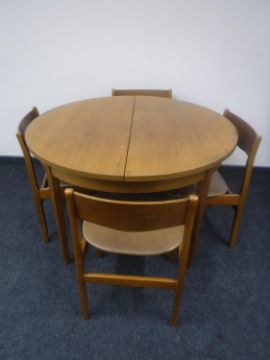 A circular 1970's teak extending dining table and four chairs