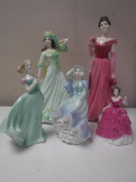 Five Coalport figures - Lady's of Fashion Lady in Red, Sentiments, Coming of Age, Love Token, Bonny Lass and Jessica