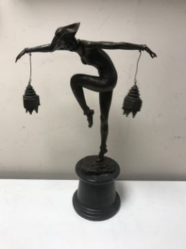 A bronze Art Deco style figure of a lady dancing, on marble base