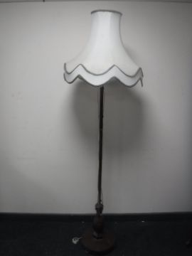 An antique rosewood standard lamp with shade