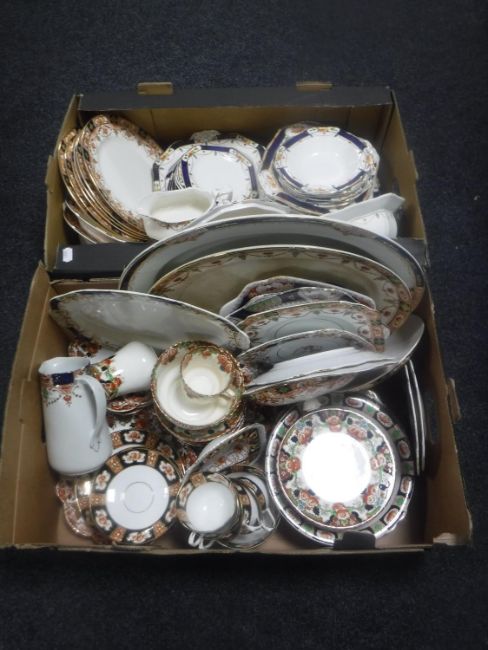 Two boxes of antique dinner ware and dessert sets