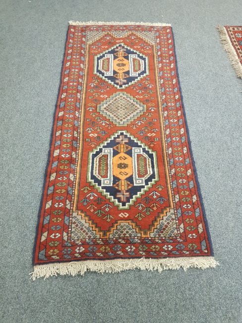 A Caucasian design runner on red ground, 190cm by 83cm