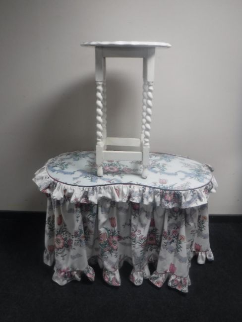 A mid 20th century kidney shaped two drawer glass topped chest and an occasional table