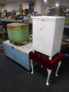 A loom blanket box, storage footstool, soiled box and a dressing table stool