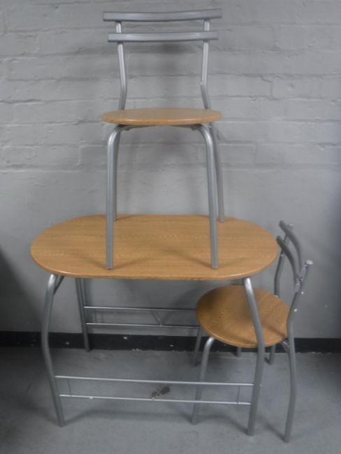 A contemporary kitchen table and two chairs