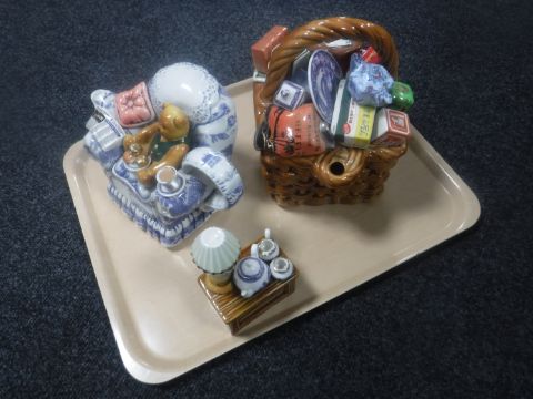 Two Ringtons novelty teapots - Tea time teapot number 3897 of 7550 and Monte basket teapot number 2270 or 7500