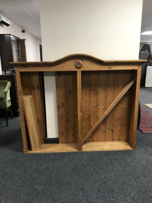 A set of pine arched topped open shelves