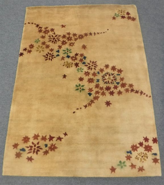 A hand-knotted rug of floral design on gold ground, 180cm by 120cm