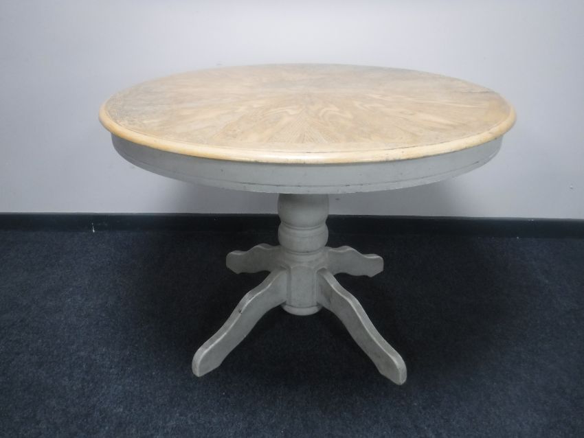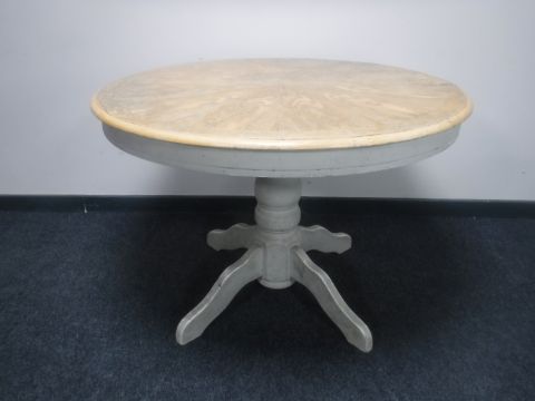 A circular pedestal extending kitchen table