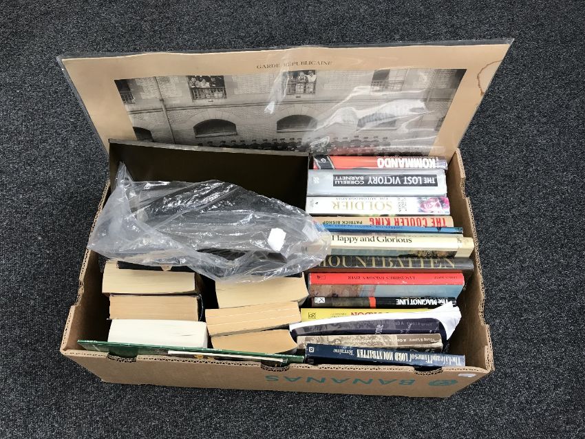 A box of military photographs, large 1906 Garde Republicaine photograph together with assorted military books