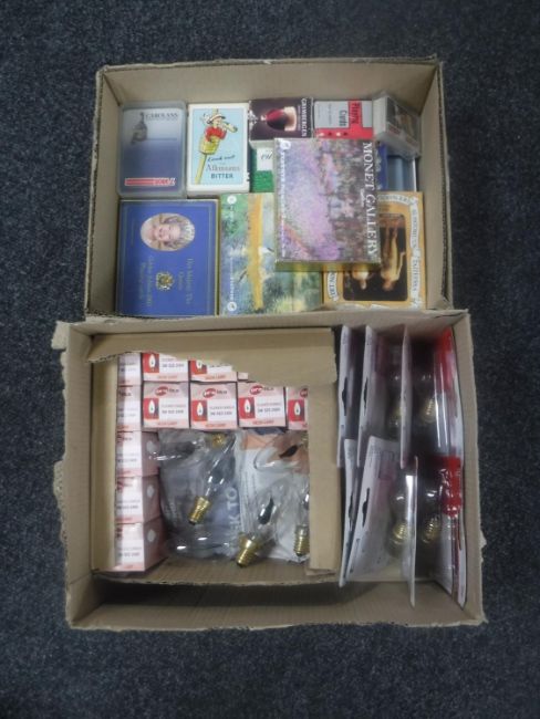 Two boxes of candle light bulbs, playing cards, one volume : Lambeth method of cake decoration