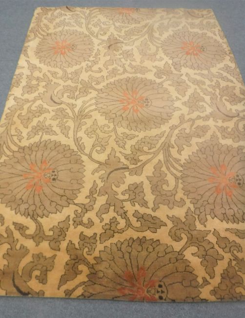 A hand-knotted rug of floral design on gold ground, 180cm by 270cm