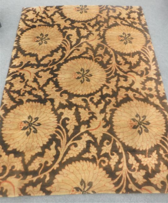 A hand-knotted rug of floral design on brown ground, 180cm by 270cm