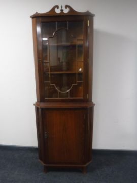 An inlaid mahogany corner display cabinet together with an Italian style double door cabinet