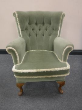 A mid 20th century armchair upholstered in a green buttoned dralon