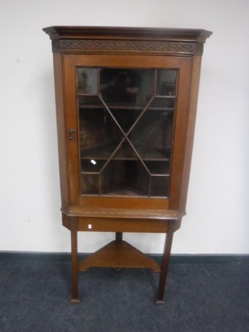A Victorian mahogany astragal glazed corner cabinet on stand