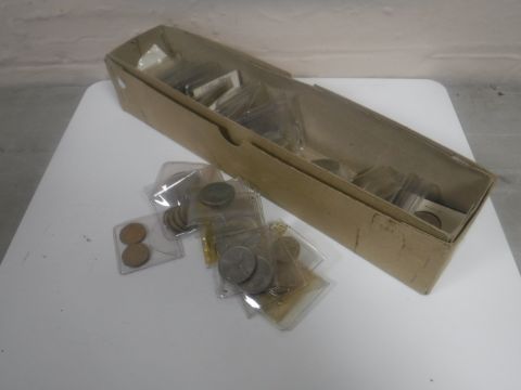 A box containing a quantity of British coins. (Q)