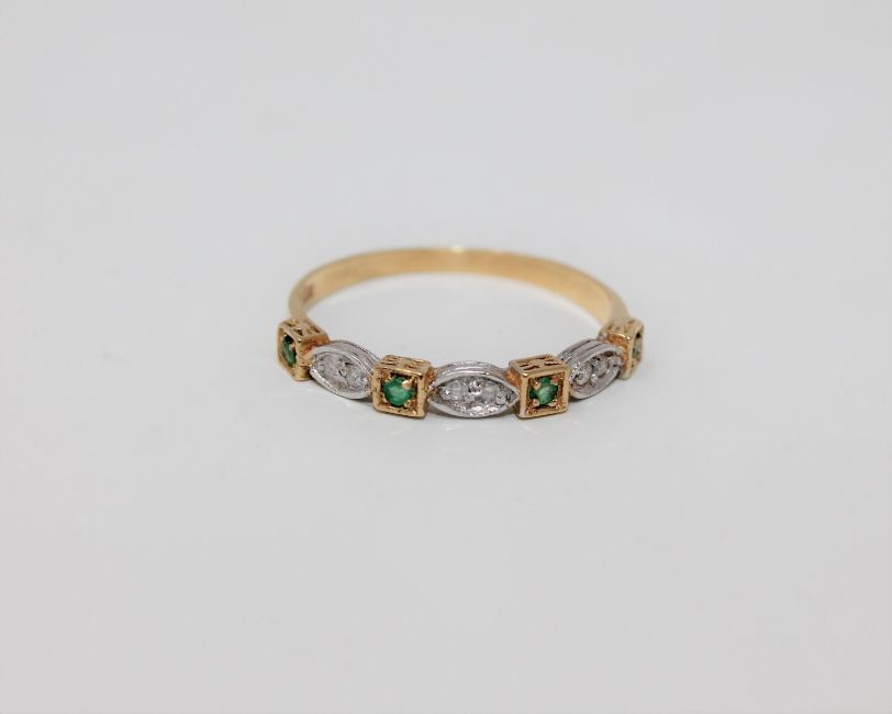 An 18ct gold emerald and diamond set half-eternity ring, size O