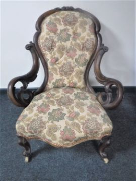 A Victorian mahogany lady's chair upholstered in floral fabric