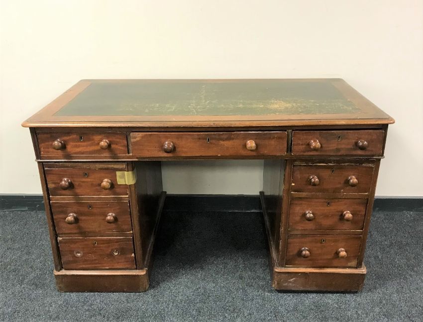 A Victorian mahogany twin pedestal desk fitted nine drawers