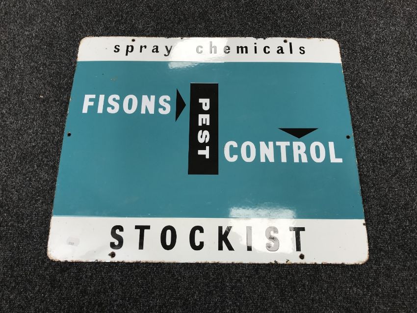 A twentieth century enamelled sign - Fisons pest control spray chemicals stockist, 61cm by 51cm