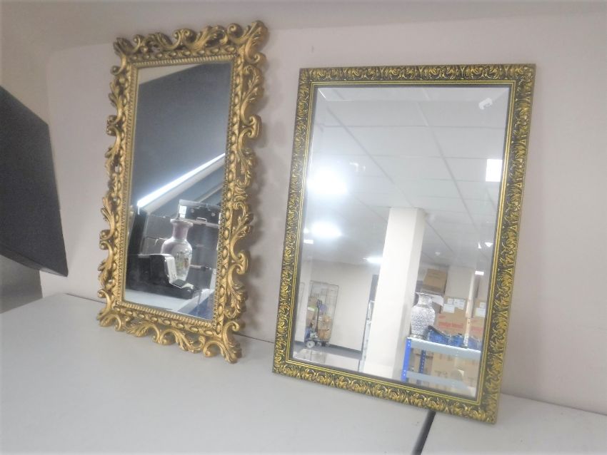 An ornate gilt framed mirror together with a rectangular gilt framed mirror