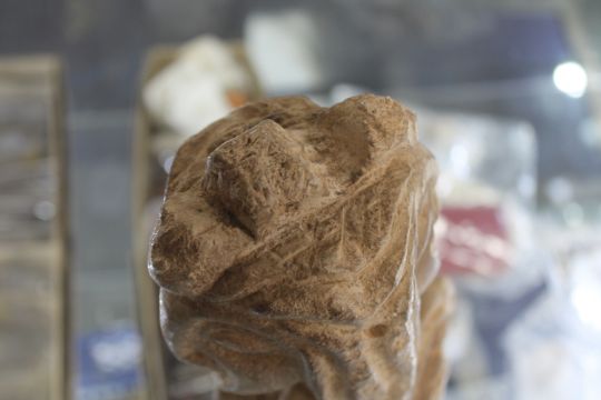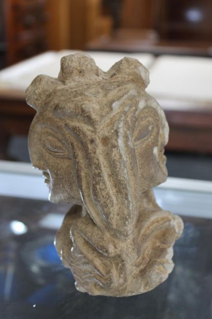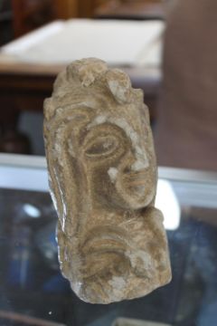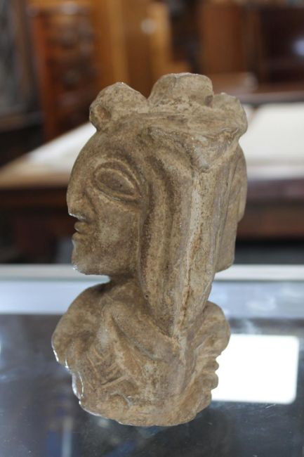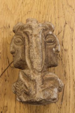 A medieval carved stone figure of Janus, the two-headed god, looking to the past and future, height 17cm