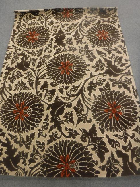 A hand-knotted rug of floral design on brown ground, 180cm by 270cm
