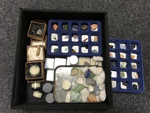 A box of semi precious stones, rock samples etc