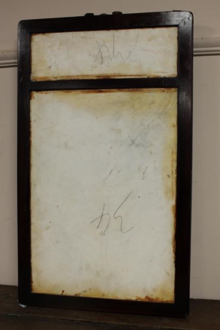 A Chinese painted porcelain panel depicting cats in a garden, in hardwood frame, 73 cm x 43 cm.