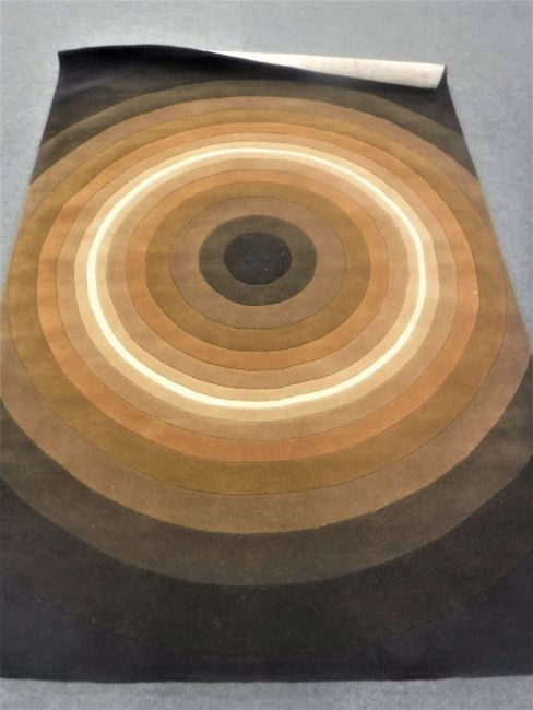 A hand-knotted rug of concentric circle design, 180cm by 270cm