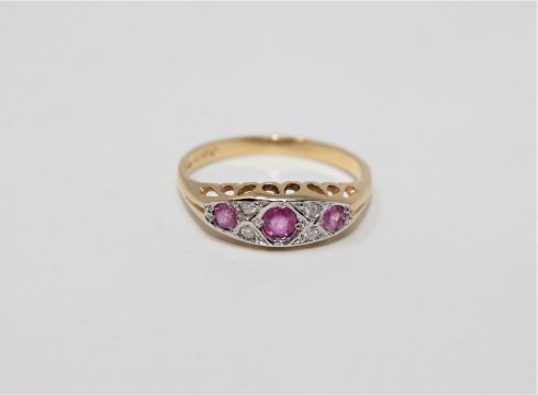 An 18ct gold ruby and diamond ring, size O