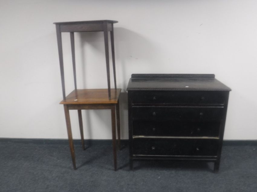 An early twentieth century oak four drawer chest together with two occasional tables