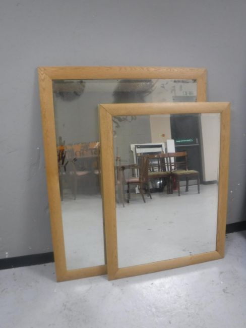 Two contemporary oak overmantel mirrors