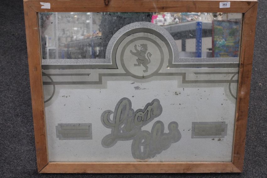 A pine framed mid twentieth century Lion Ales pub mirror