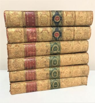 Four 19th century leather bound and gilded volumes; the History of England by Dr. Goldsmith, volumes I, II, III and IV. With two further volumes; The Roman History From the Foundation of the City of Rome to the Destruction of the Western Empire, by Dr. Goldsmith