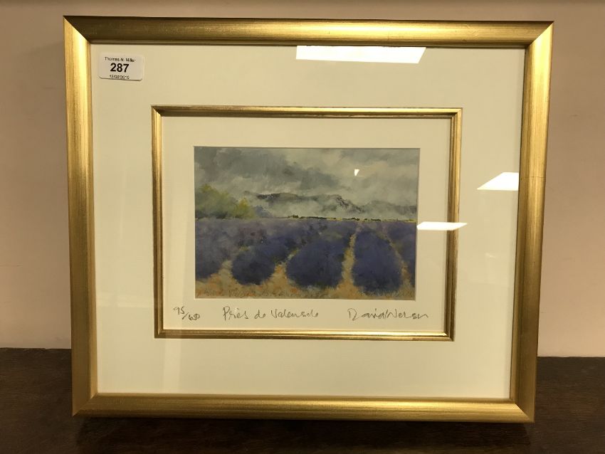David Welsh : Pries de Valensole, screenprint, signed in pencil, numbered 95/650, 20 cm x 27 cm, framed.