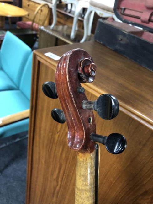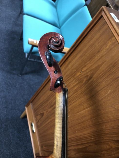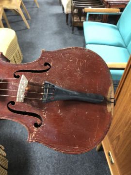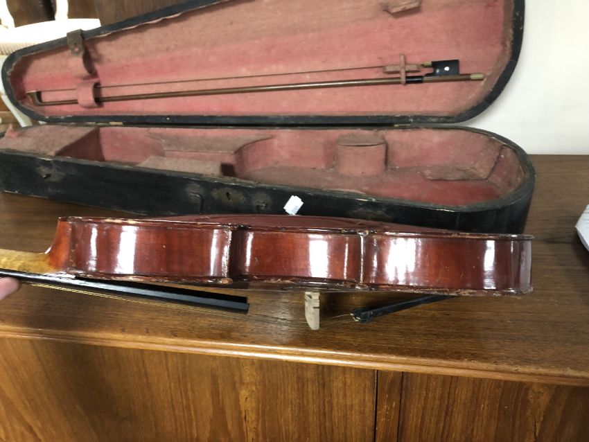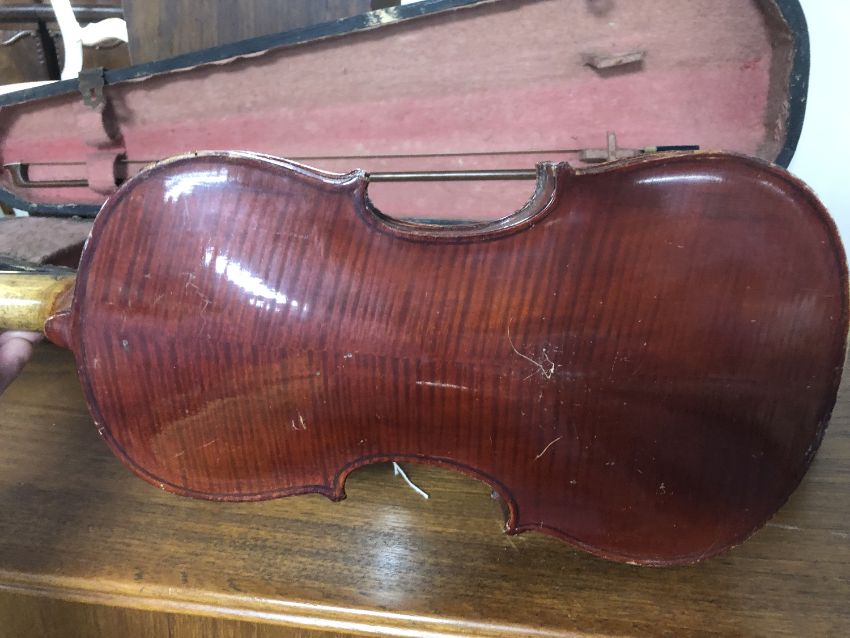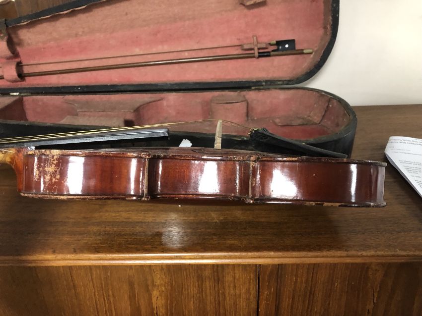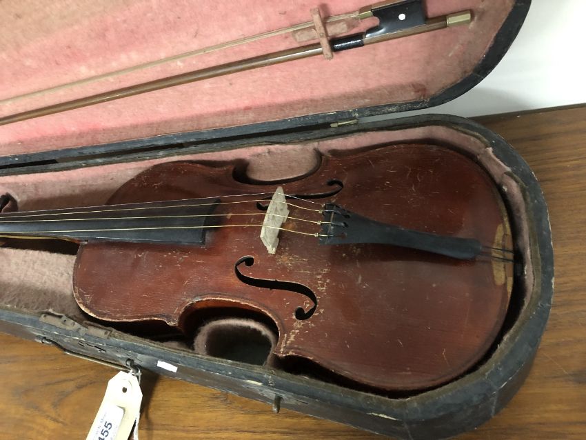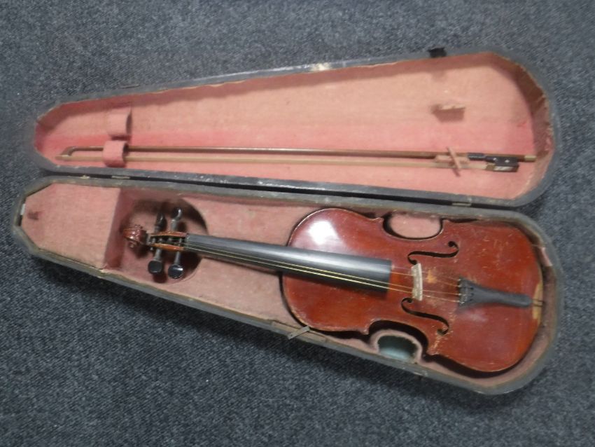 A German made copy of a Stradivarius violin and bow in case