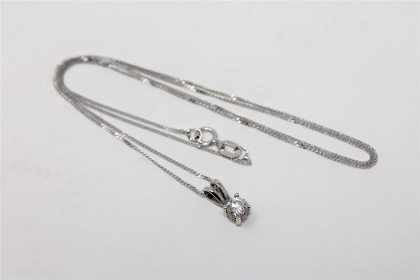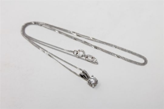 An 18ct white gold diamond set pendant on chain, the brilliant-cut stone weighing approximately 0.2 carat, length 45cm