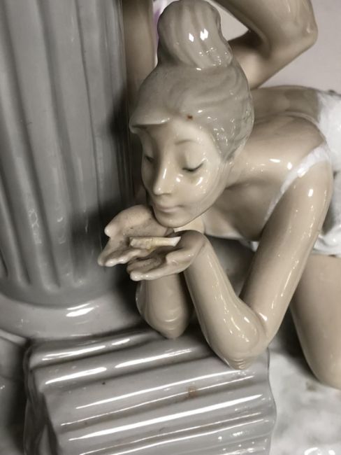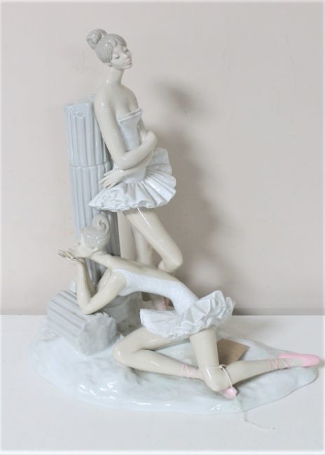 A Lladro figure of two ballerinas at a stone column (a/f)