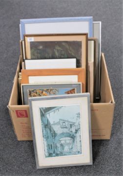 A box containing fifteen miscellaneous 20'th Century pictures and prints. (15)