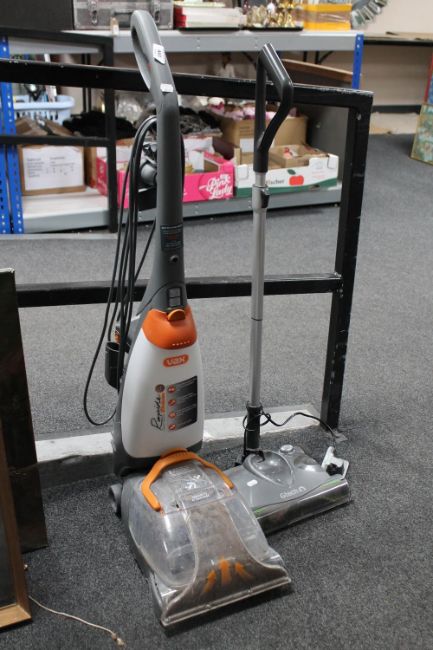 An upright Vax rapide carpet cleaner together with a G-tech cordless carpet sweeper
