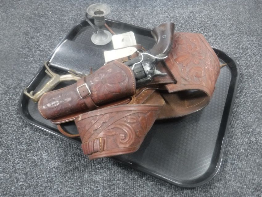 The revolver is a non-working replica.
